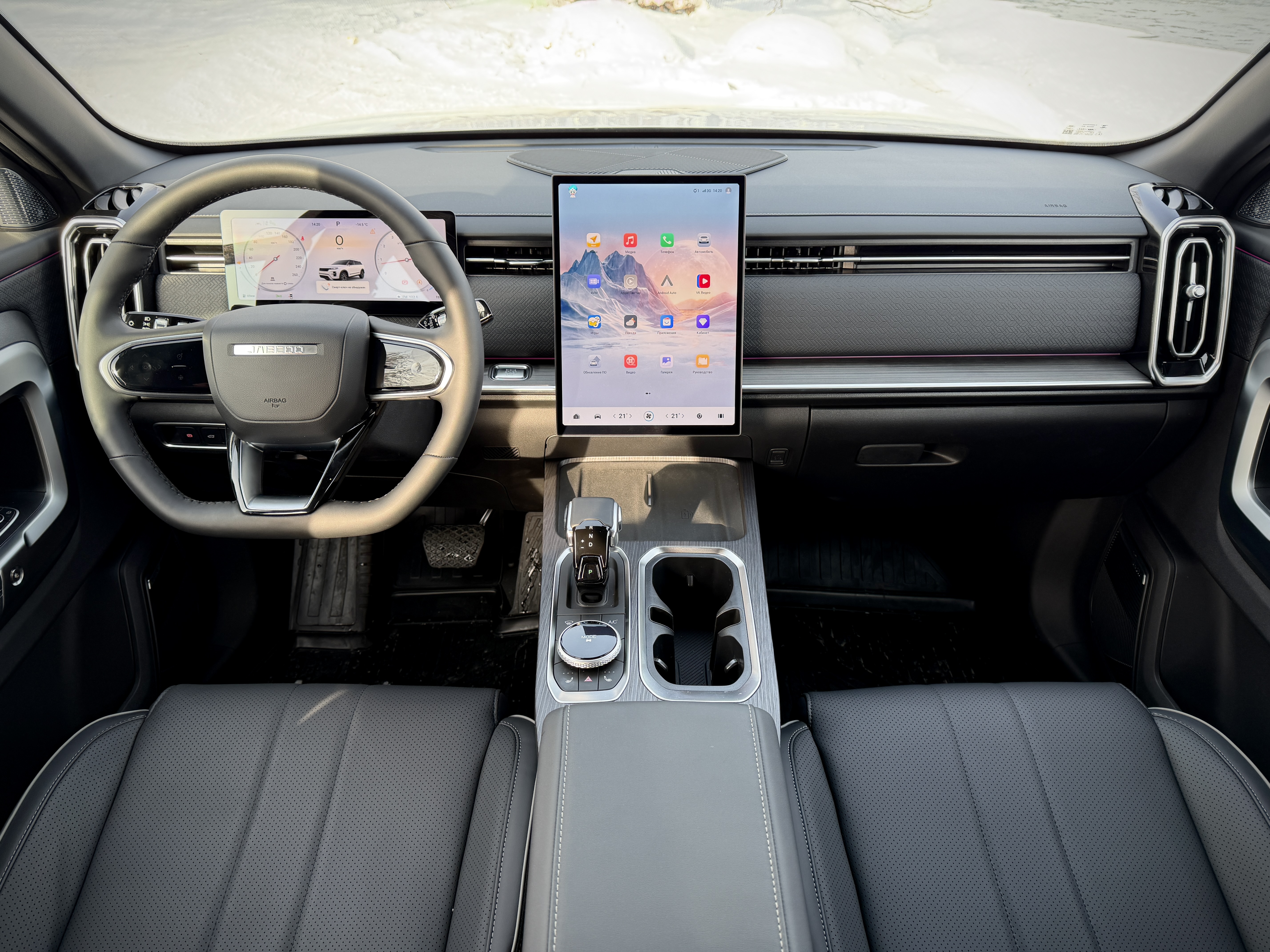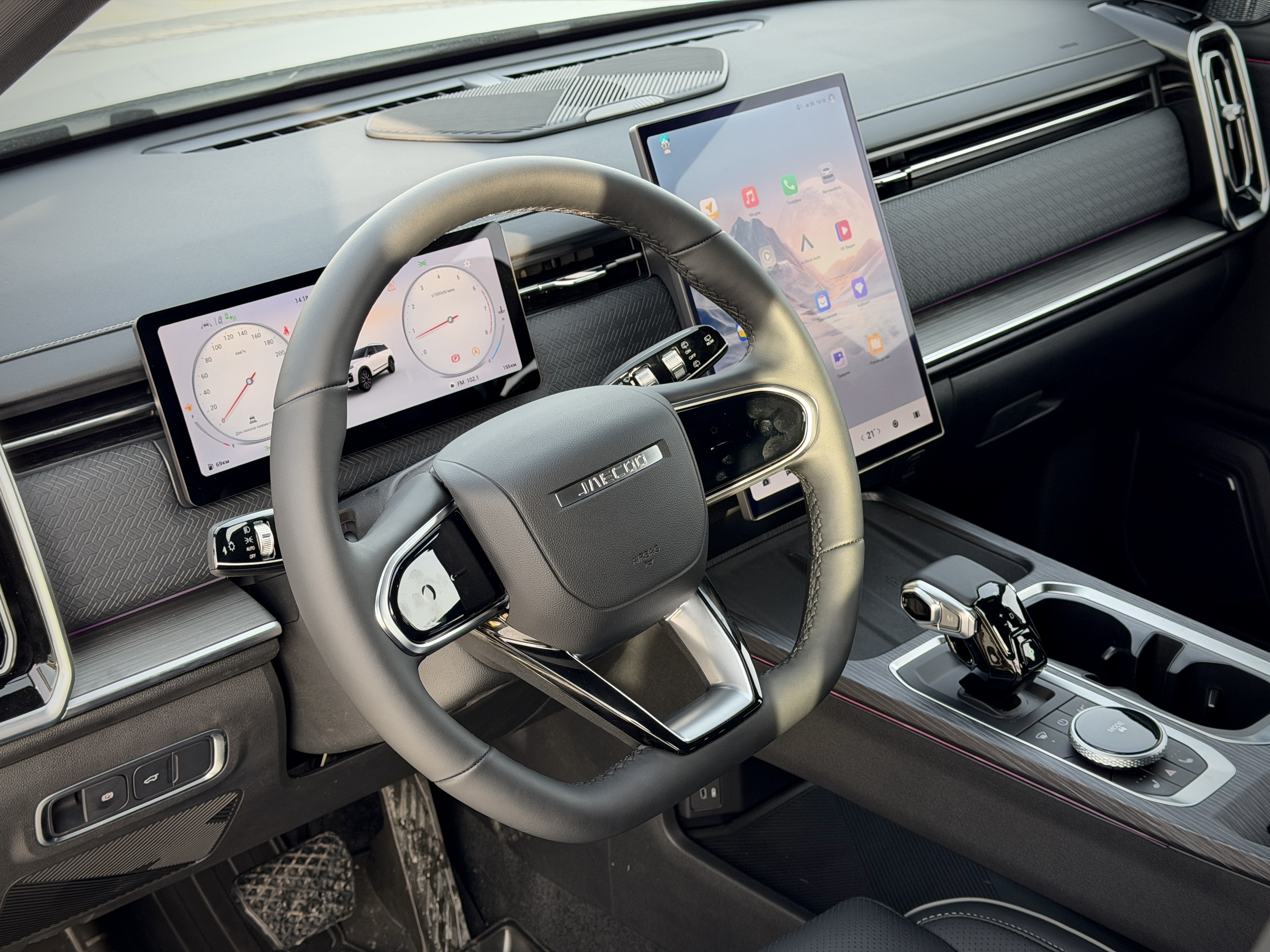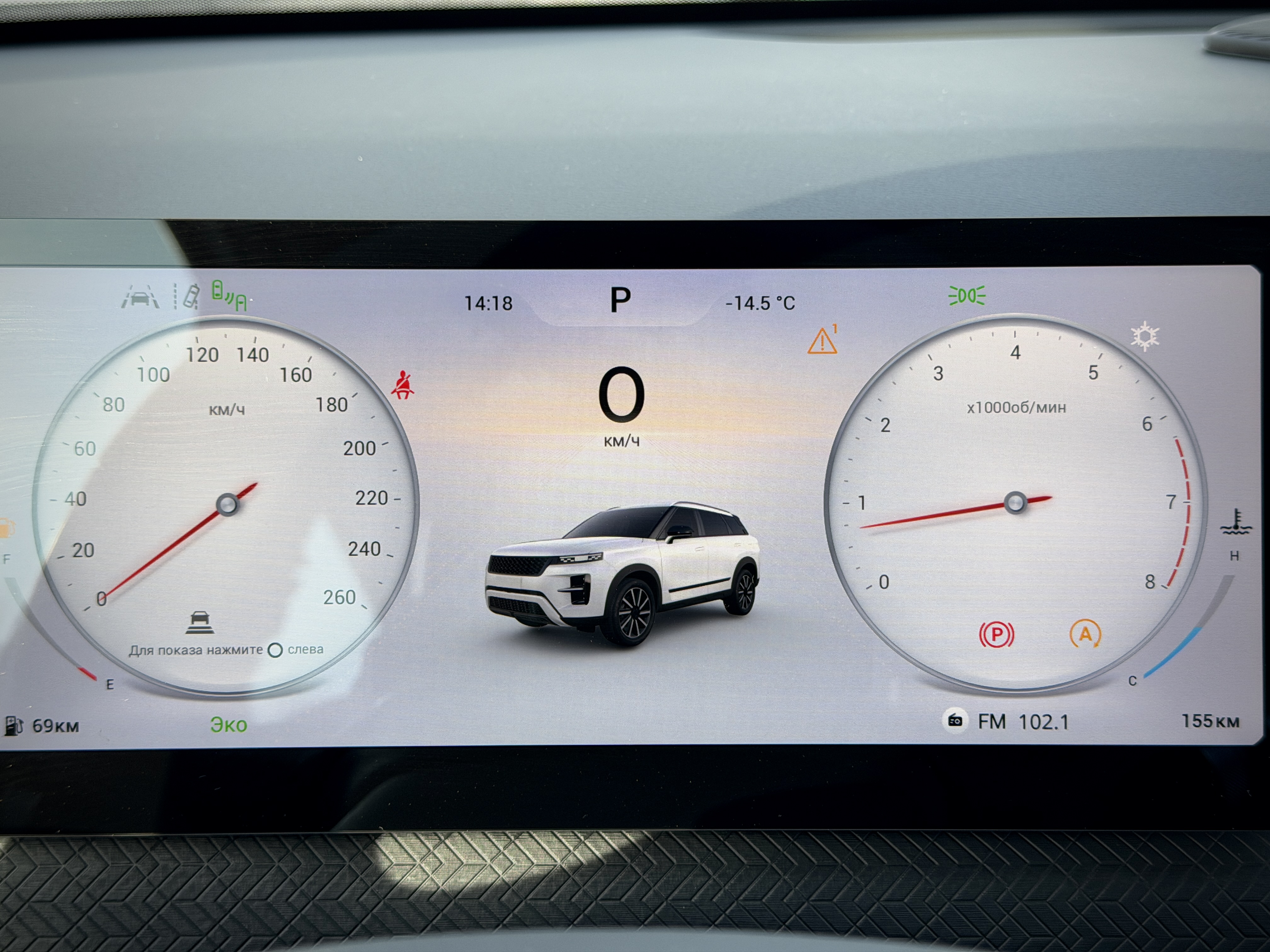 JAECOO J7 оснащен штатным прогревом двигателя, который заводится с ключа. Когда садишься за руль, на приборной панели видно, идет ли процесс обогрева. Как только рабочая температура набрана, раздается звуковой сигнал и появляется оповещение, что можно начинать движение. Климат-контроль здесь раздельный, управление им осуществляется с мультимедийного дисплея. Водительское и пассажирское сидение не только обогреваются, но и вентилируются, также есть подогрев задних сидений, руля и лобового стекла. Последнее греется по всей площади, а не только в зоне стеклоочистителей. Причем происходит это за считанные минуты — «оттаивает» оно моментально. Управление данными опциями удобно выведено в отдельные вкладки на основном дисплее мультимедиа.