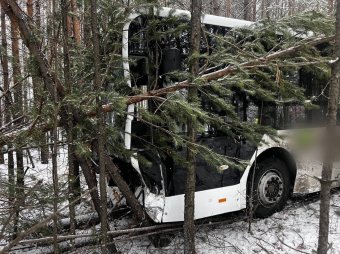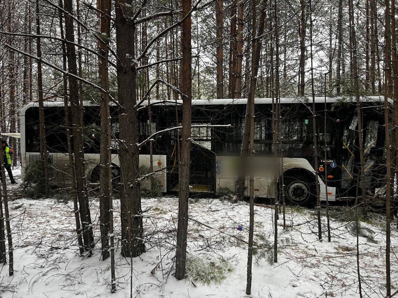 Пассажиру внедорожника и трем пассажирам автобуса, который съехал с дороги, понадобилась помощь врачей. Внутри находились 12 человек. В первом автобусе — 28, никто из них не пострадал.
