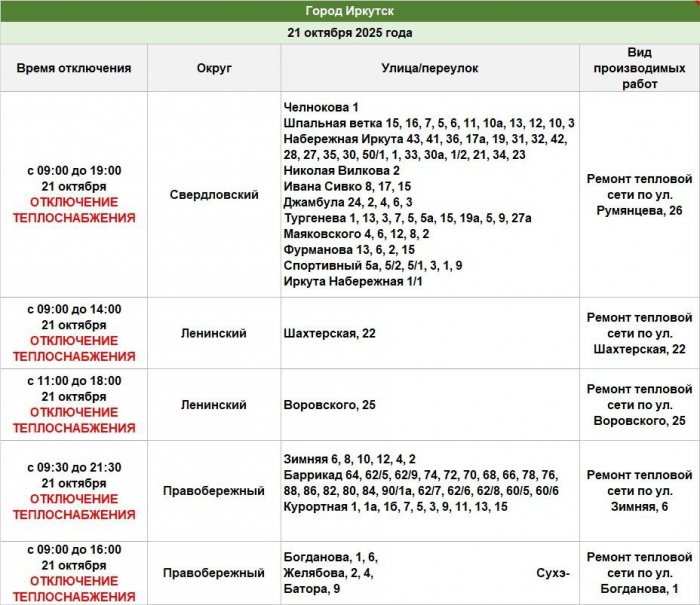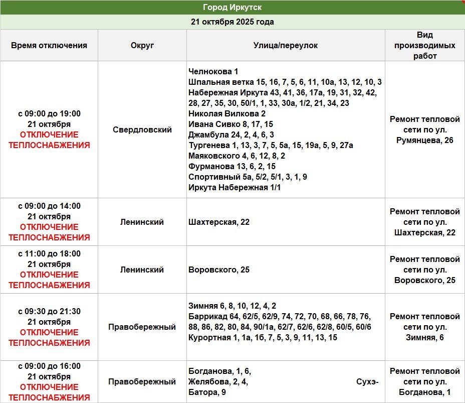 Карта отключений горячего водоснабжения размещена на сайте Иркутской энергосбытовой компании размещена. Контакт-центр: 8-800-100-9777 или 8-3952-790-777.