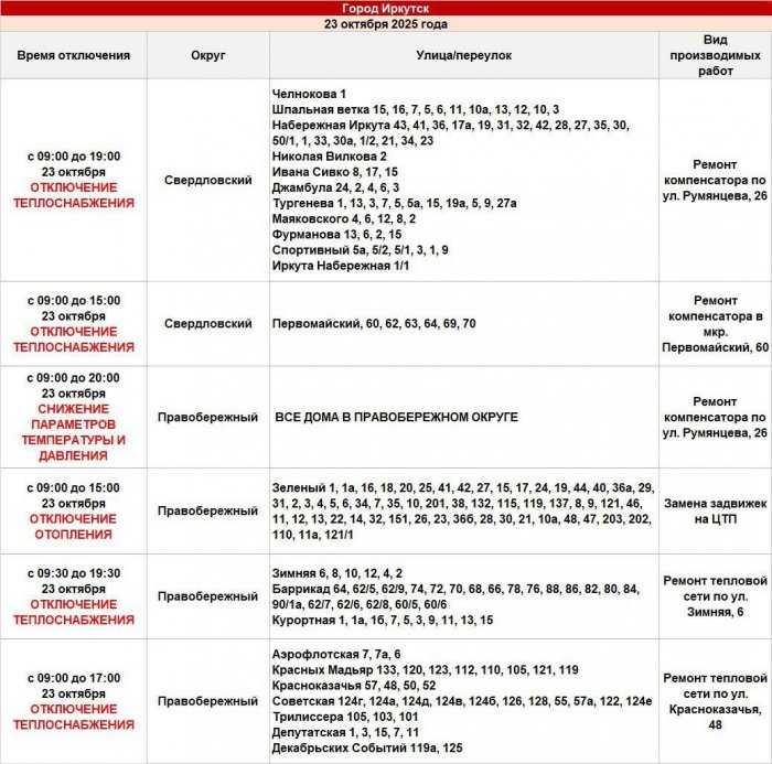 Горячее водоснабжение будет ограничено в части Свердловского и Правобережного округов для проведения ремонтных работ на тепловой сети, чтобы не допустить аварийной ситуации. В Правобережном округе снижения параметров связано с ремонтом сальникового компенсатора на магистральном трубопроводе, который подает теплоснабжение от Ново-Иркутской ТЭЦ на правый берег.