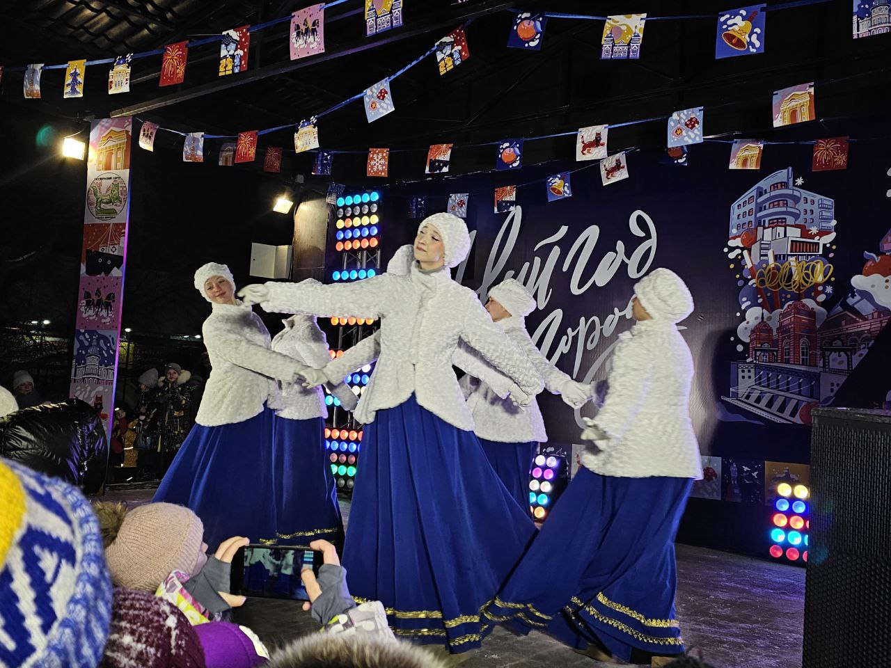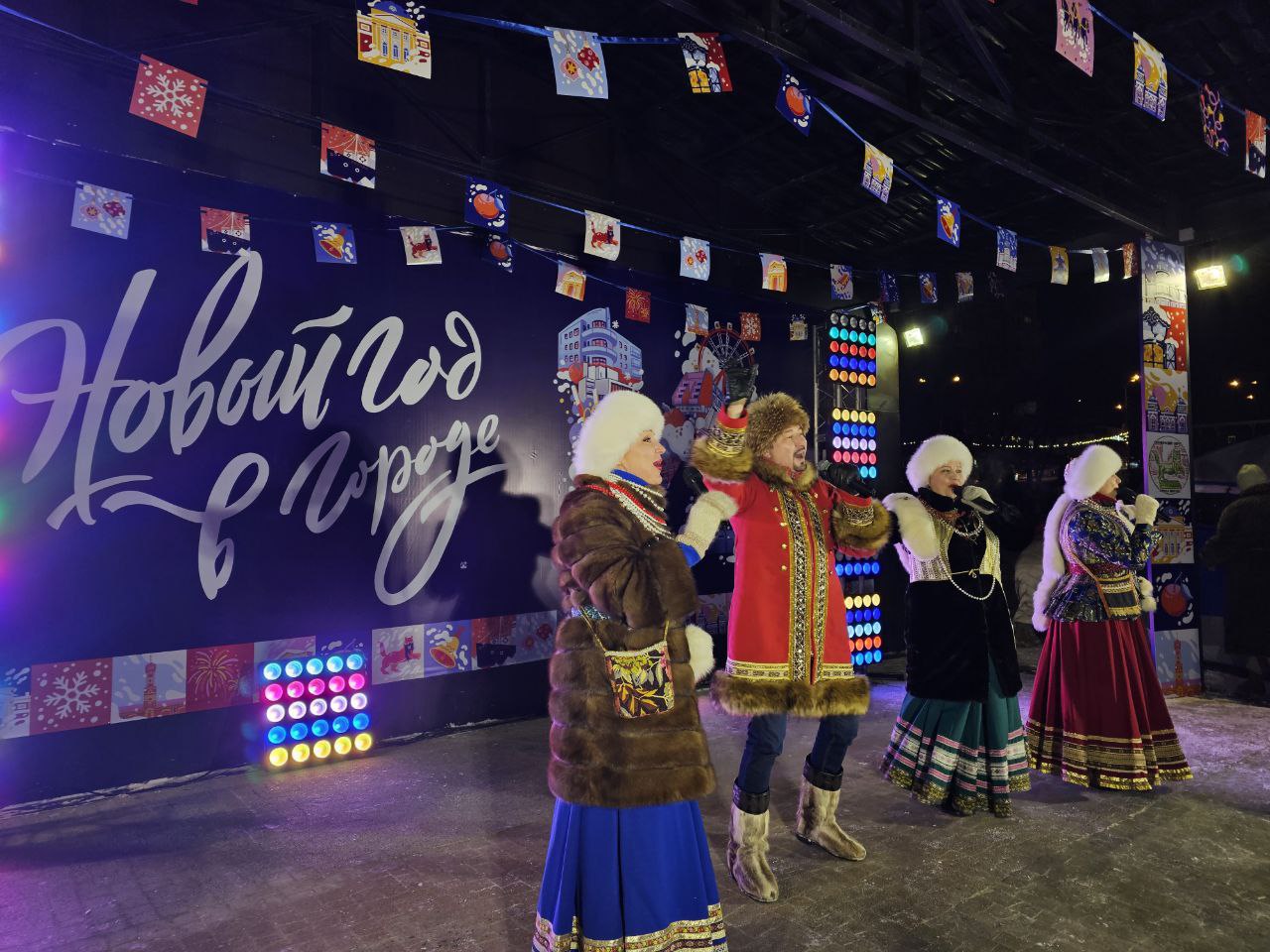 Особое настроение создавали народный ансамбль «Красная горка» и лучшие танцевальные коллективы Октябрьского округа. Завершился праздник огромным хороводом у елки.