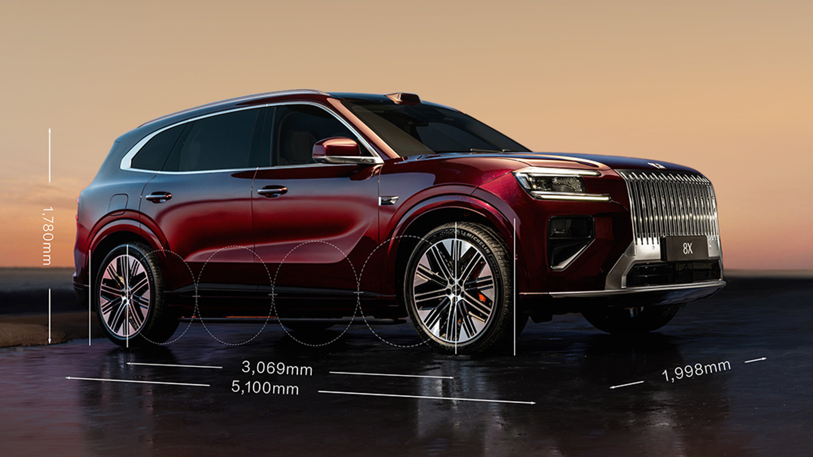 - Габариты Zeekr 8X составляют 5100×1998×1780 мм, колёсная база — 3069 мм.