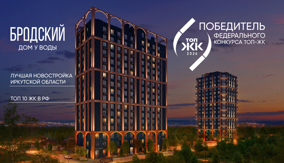 Проект бизнес-класса Дом у воды «БРОДСКИЙ» стал победителем федерального конкурса «ТОП ЖК-2026» в номинации «Лучший жилой комплекс-новостройка Иркутской области».