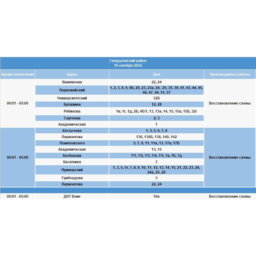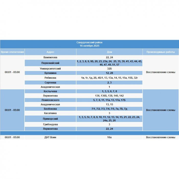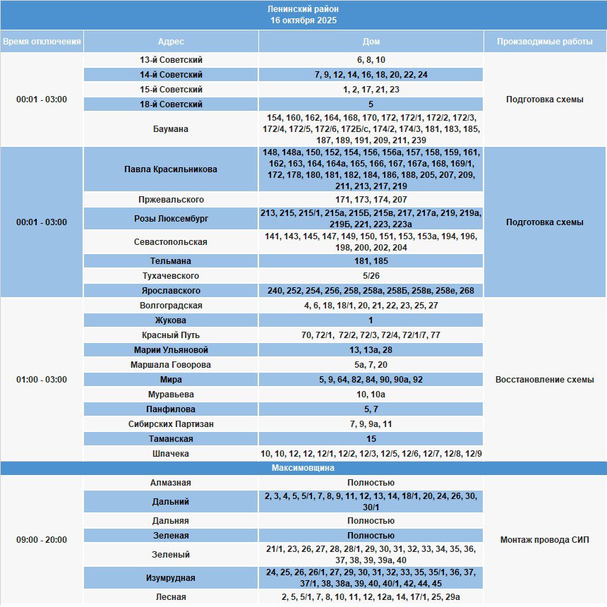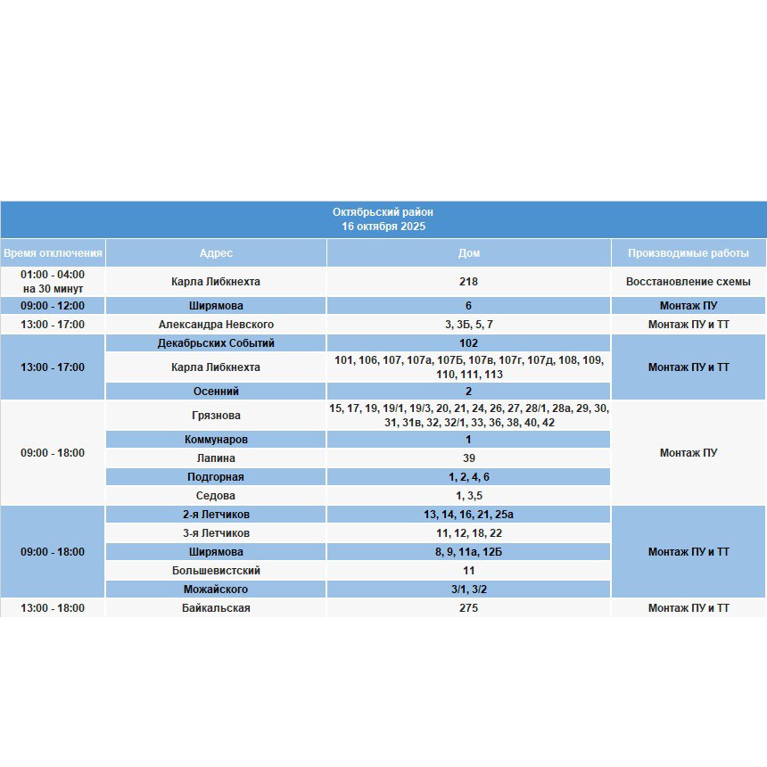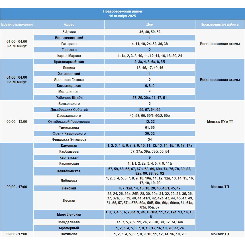Отключение произойдет сегодня, 16 октября, в некоторых домах Ленинского, Октябрьского, Правобережного и Свердловского районов.