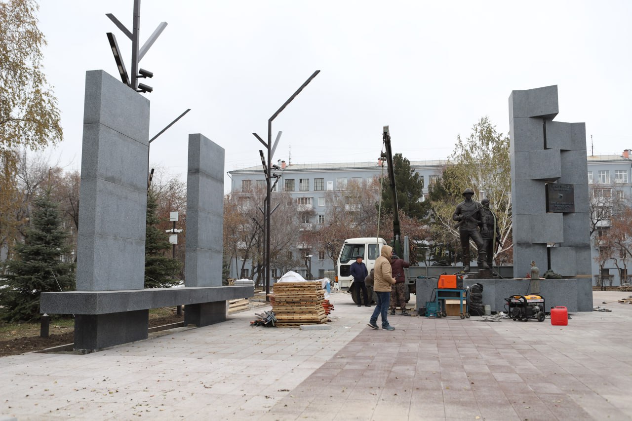 На площади уже начались работы по установке памятника, завершается укладка тротуарной плитки, монтаж качель и благоустройство прилегающей территории. Открытие мемориала запланировано на 4 ноября.