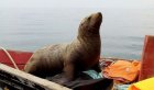 Несколько мужчин, рыбачивших на небольшом судне в Макаровском районе Сахалинской области, на протяжении 8 часов были вынуждены возить с собой морского котика, который отказывался покидать лодку.